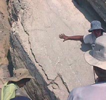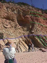 Having walked too far down the beach, the above Geological Unconformity was noted. Luckily someone knew where the group of footprints were and they were duly noted. For more information on these fossils please visit "Dinosaur Footprints"