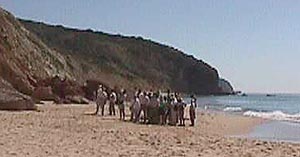 The day started with a group of around 40 to 45 people meeting at the Atlantico Beach Bar on Salema Beach - only to find that the tide was in, and one set of the footprints were underwater!
