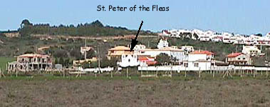 road to the Municipal aerodrome. The congregation could listen to notices and sermons delivered from the outside pulpit. The hermitage was in the building at the back of the church. Its full dedication is to S�o Pedro do Pulg�o e Nossa Senhora dos afflitos - that is Saint Peter of the vine-louse and Our Lady of the afflicted. |