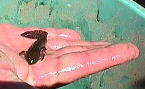| A Marsh Frog | A small Moorish Ghecko (not actually in the pond!) |