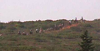 The quality of the photograph is poor, as it was taken on maximum zoom, without a tripod - but this "Beginners' Ride" shows all the Riding Centre Horses at work, as they return home over the hill.
