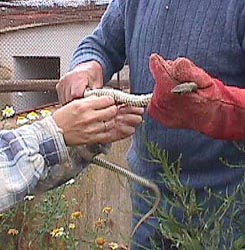Going to feed the chicks around the back a snake was discovered trapped in the chicken-wire. A photographic record was taken of its rescue.