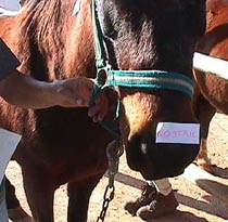 | Buerere patiently is labelled to demonstrate | points of the pony for the children |